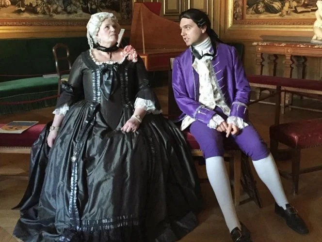 Guests were instructed to part way, up against either side of the room, creating an extended, narrow group of observers. Those up front were handed a red velvet ribbon, an impromptu barricade. To my dismay, classical music started, increasing in intensity until the hall doors dramatically opened to reveal King Louis XVI, Marie Antoinette, and their court, who had just arrived at the chateau.
