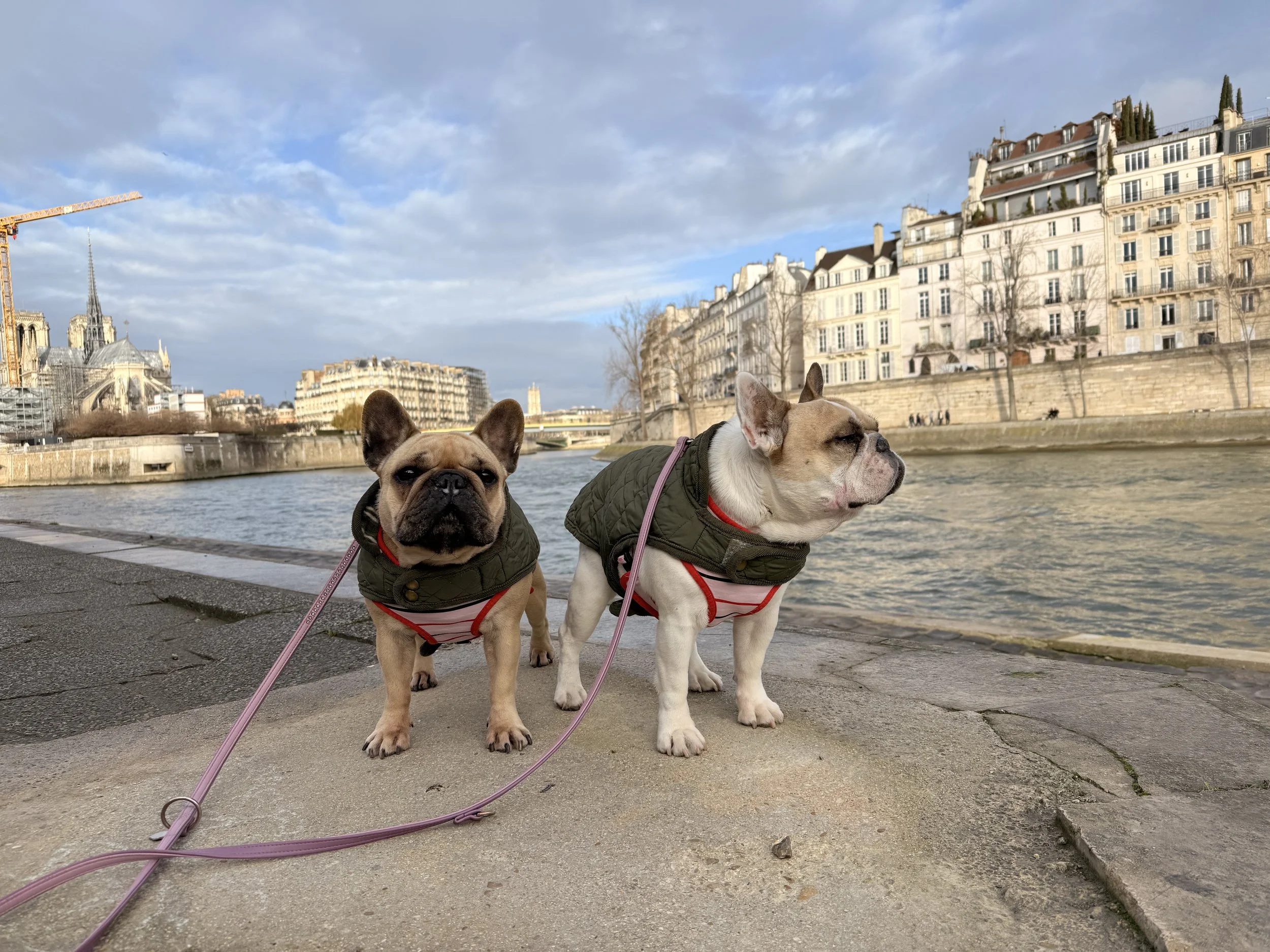 The girls, Rose (left) and Pearl (right) with Ile Saint Louis and Notre Dame in the background.