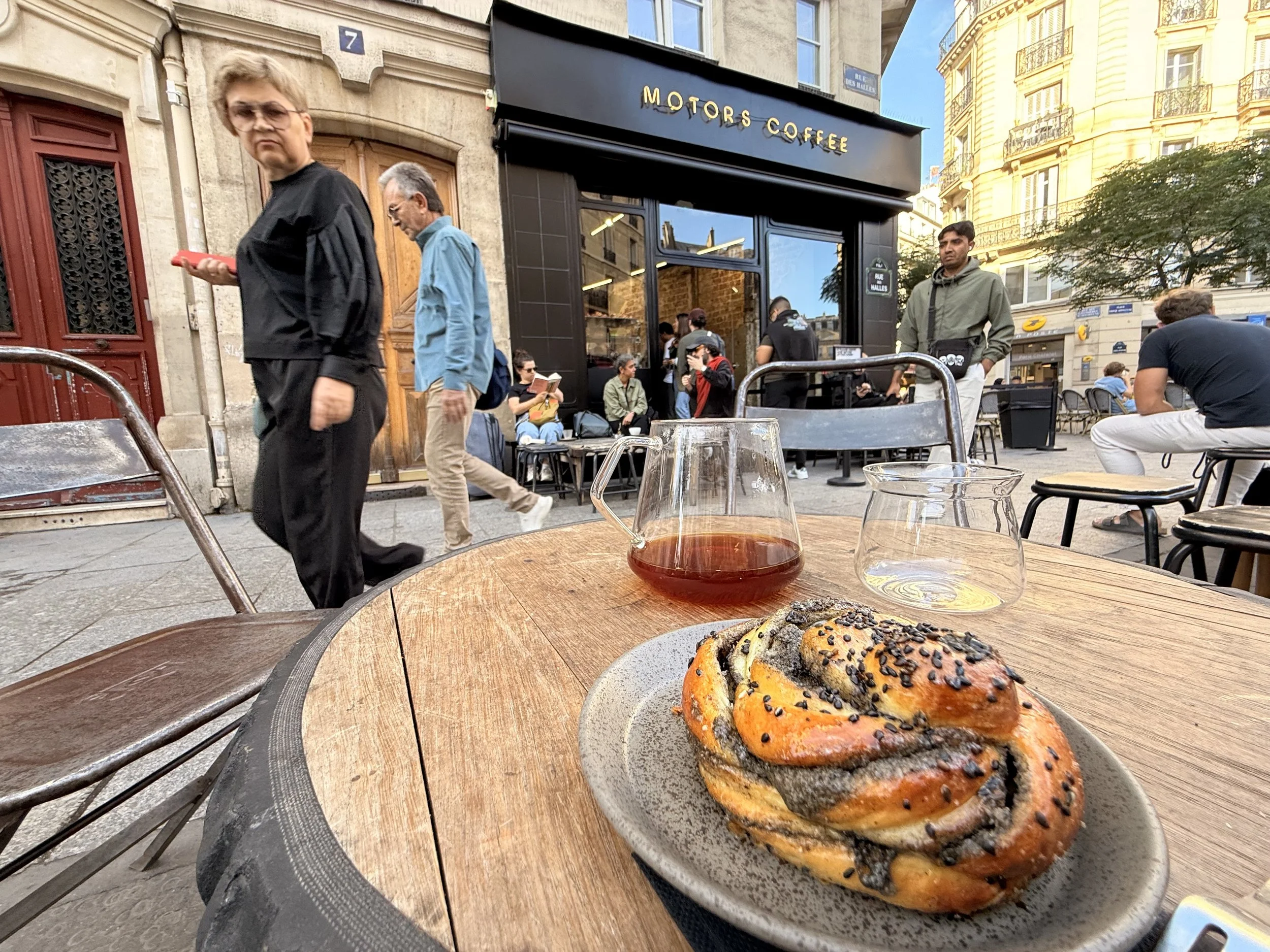 I'm documenting this because this is the autumn when I changed our morning route for cardamom rolls. 🤣 When Edouard was preparing for Bangkok. When the team knew us well enough to laugh at my joke about getting fat on their pastries. When Paris felt like home in a way that included this specific coffee shop with its too-few seats and perfect flat whites.